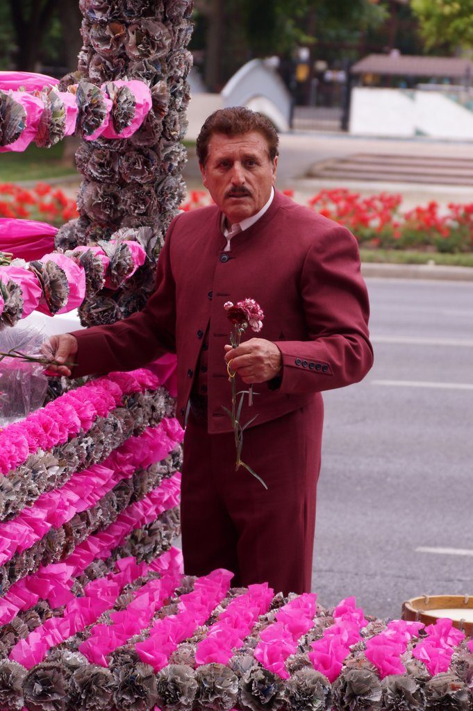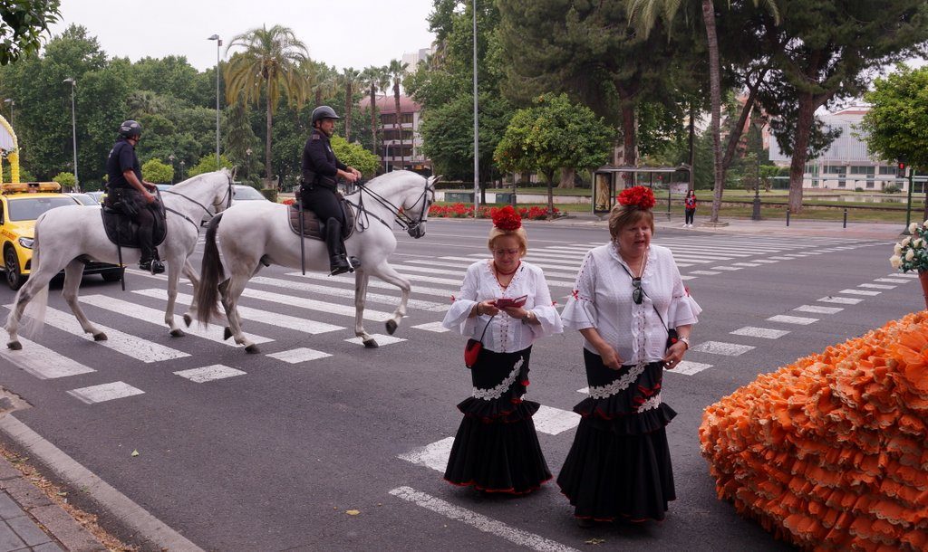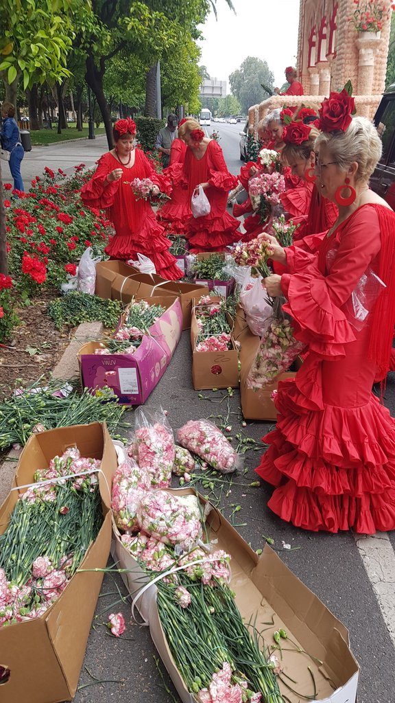 They gather at the Paseo de la Victoria. The women busy themselves tearing coronations off their stems and stuffing them in bags. But that leaves many stems with flower buds, and the public is allowed to gather those and take them home. So there are people with arms full of stems everywhere. If we were staying near, we certainly would have picked ourselves a bouquet as well.