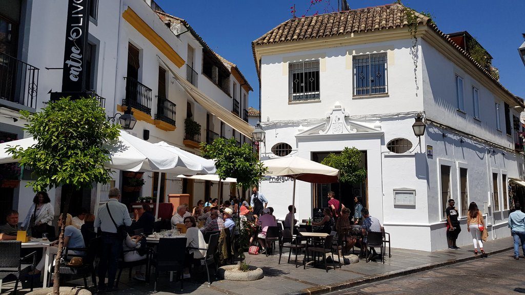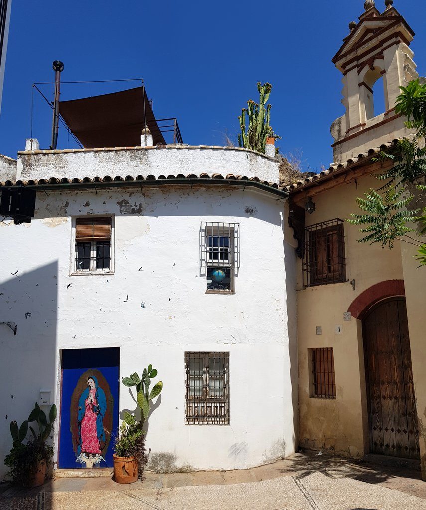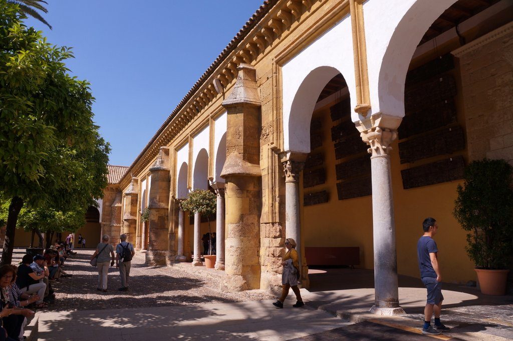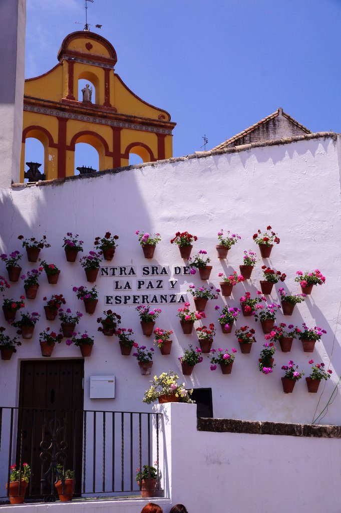 Cordoba is also known for its patio’s (courtyards). The traditional Andalusian architecture includes a patio in many city houses, and people take pride in creating beauty there. Not just in Cordoba, but in all cities here, you can often have a peep as you walk by a door standing open. This year’s patio festival starts tomorrow, but unfortunately, we won’t be here. But we manage to see quite some of them through the bars of their entrance doors.