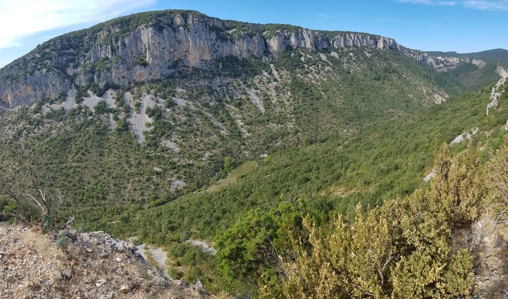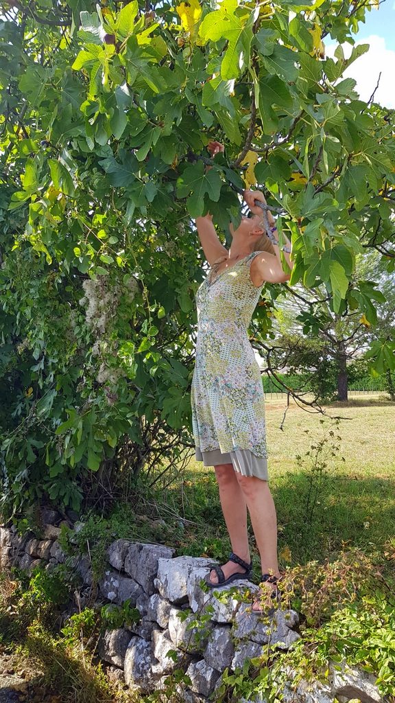 At our leasure, we drive through the Ardèche, stopping whenever there is something to explore. For example a village with tiny streets and lots of arched doorways. And in a village named Prends-toi-garde (which translates into something like “take care of yourself”), we spot a fig tree next to the road. It is well placed next to a low wall, which permits me to pluck a dozen ripe fruits from the tree. That’s enough for us, so we leave the hundreds that are still there for the next observant passers by.