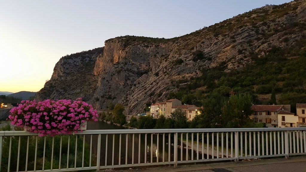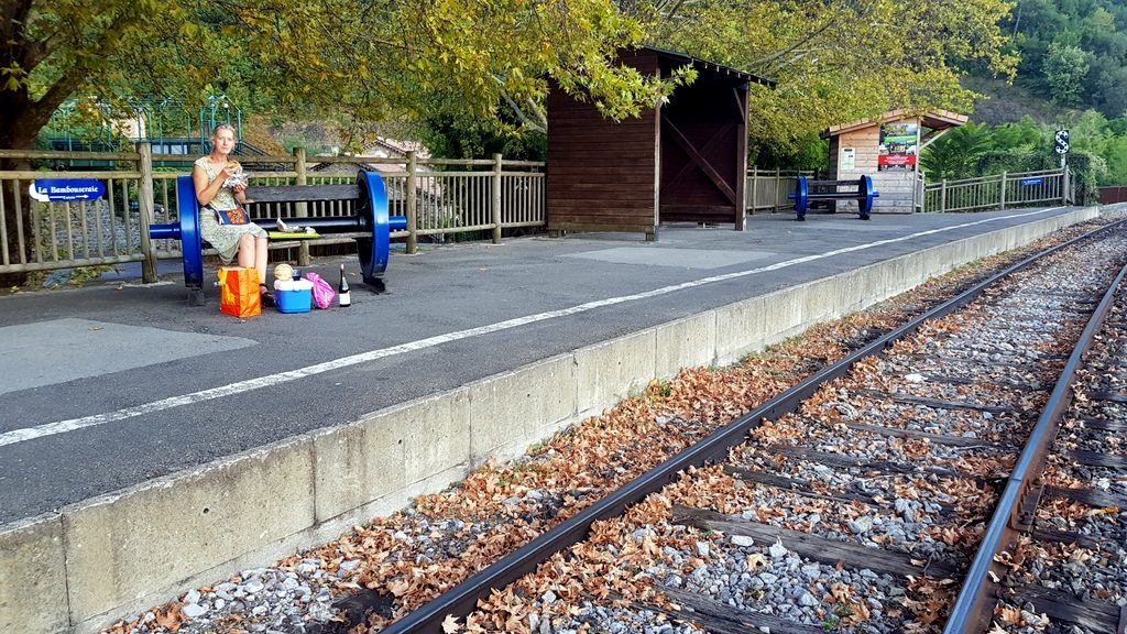 Anduze is a lovely village. We’ll go and explore more tomorrow. We end up at the Bambouseraie, which has a train station for a steam train. It has a lovely view and some benches made from train wheels, and that’s where we eat our dinner. We drive back into Anduze where I go into a bar to use the toilet and am accidently mooned by a young man. Quite funny, for he is unaware of my presence when he drops his pants (he has his back turned towards me). He turns around to show his butt to his comrades when he comes face to face with me. I tell him “I saw that”, and go into the bathroom, leaving him utterly embarrassed.