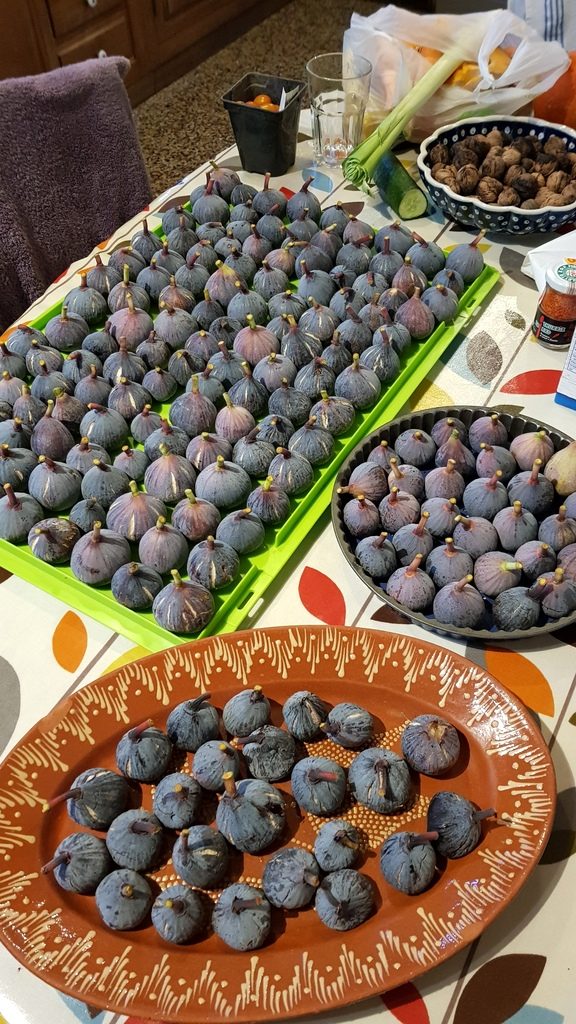 After spending a couple of frustrating hours behind the computer (no need to elaborate on that), we cross the street to Odette. For she has a walnut- and a fig tree and she told us we can take as much walnuts and figs as we like. So we gather a bag full of walnuts and one full of ripe figs. We’re going to make fig-chutney. And possibly other delicious things. You can’t taste stuff through a blog, so you’ll just have to look at the pictures 🙂